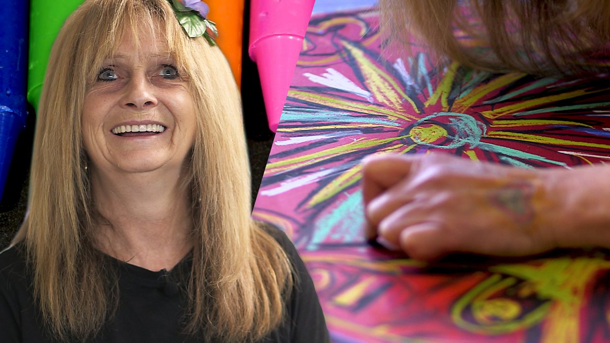 A car crash led to Jo 'Sunshine' Adamson losing most of her vision and becoming homeless. Eight years later she rediscovered art and draws vibrant, colourful images every day.