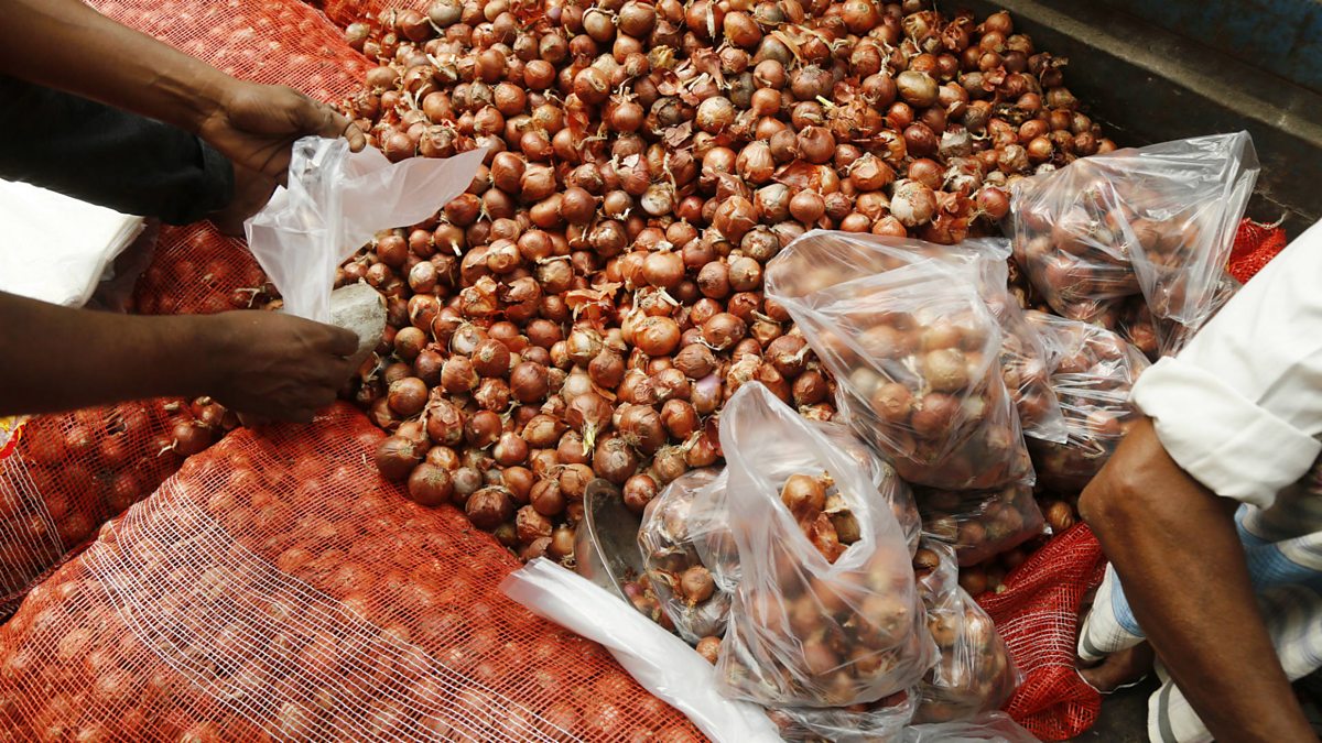(Picture: Vendors pack onions for distribution in Bangladesh.