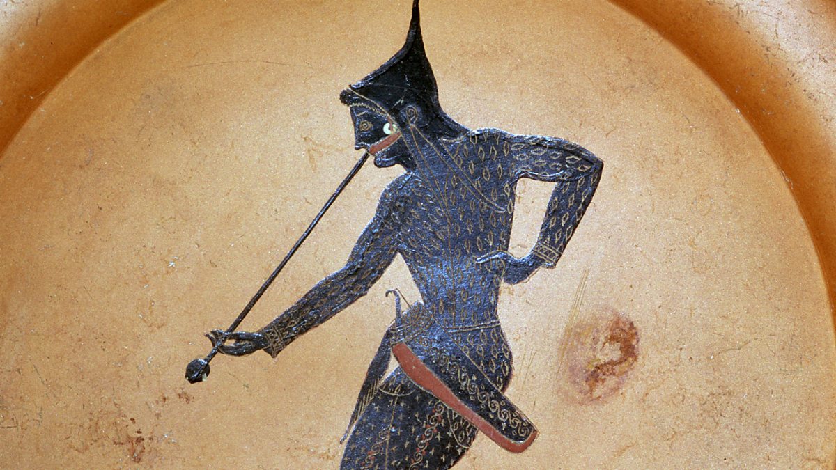 Picture: Attic painting on a clay plate of a Scythian archer blowing a trumpet, from the British Museum's collection, 6th century BC. (Credit: CM Dixon/Print Collector/Getty Images)