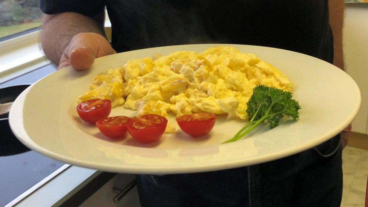 Alasdair MacLeòid a' feuchainn air reasabaidhean às an leabhar The Cook's Notebook.