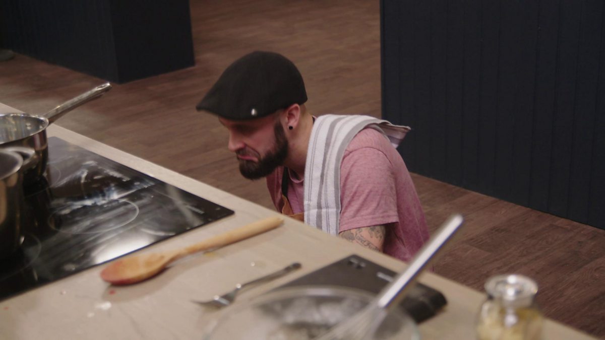 Suzie realises her oven is set at the wrong temperature and runs around the kitchen looking for another to put her dish into.