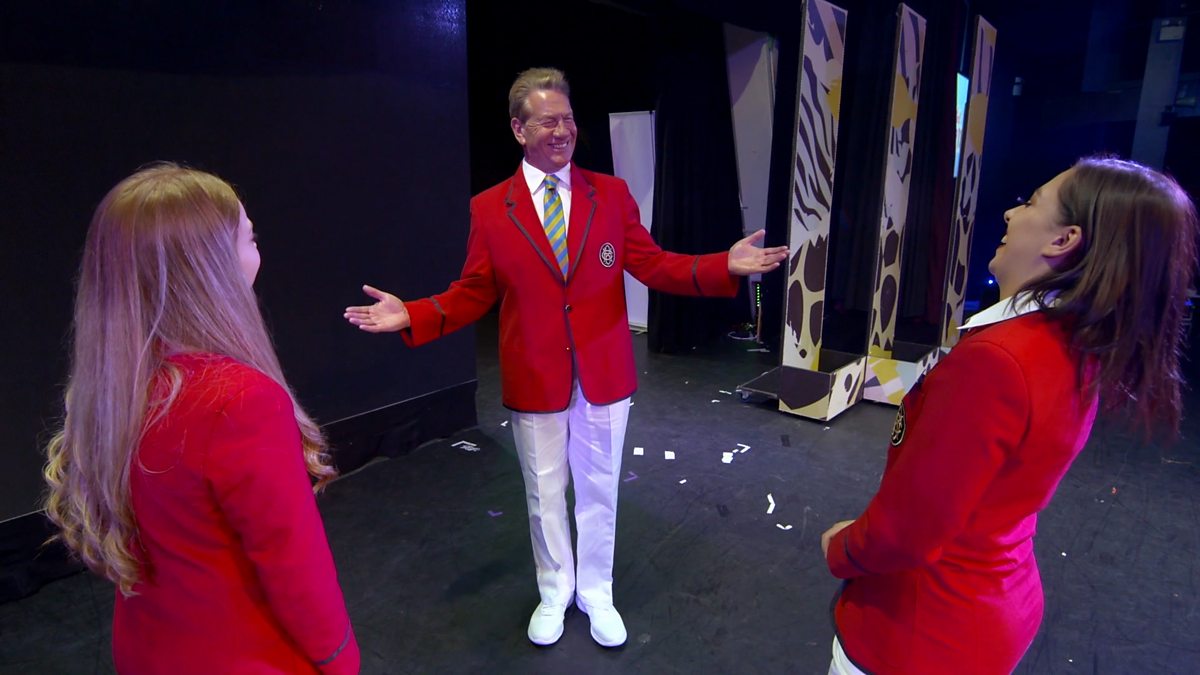 Michael learns the origins of Butlin's famous red blazer, trading his green blazer for a red one.