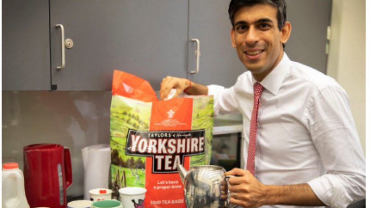 (Picture: British politician Rishi Sunak and a bag of Yorkshire Tea.