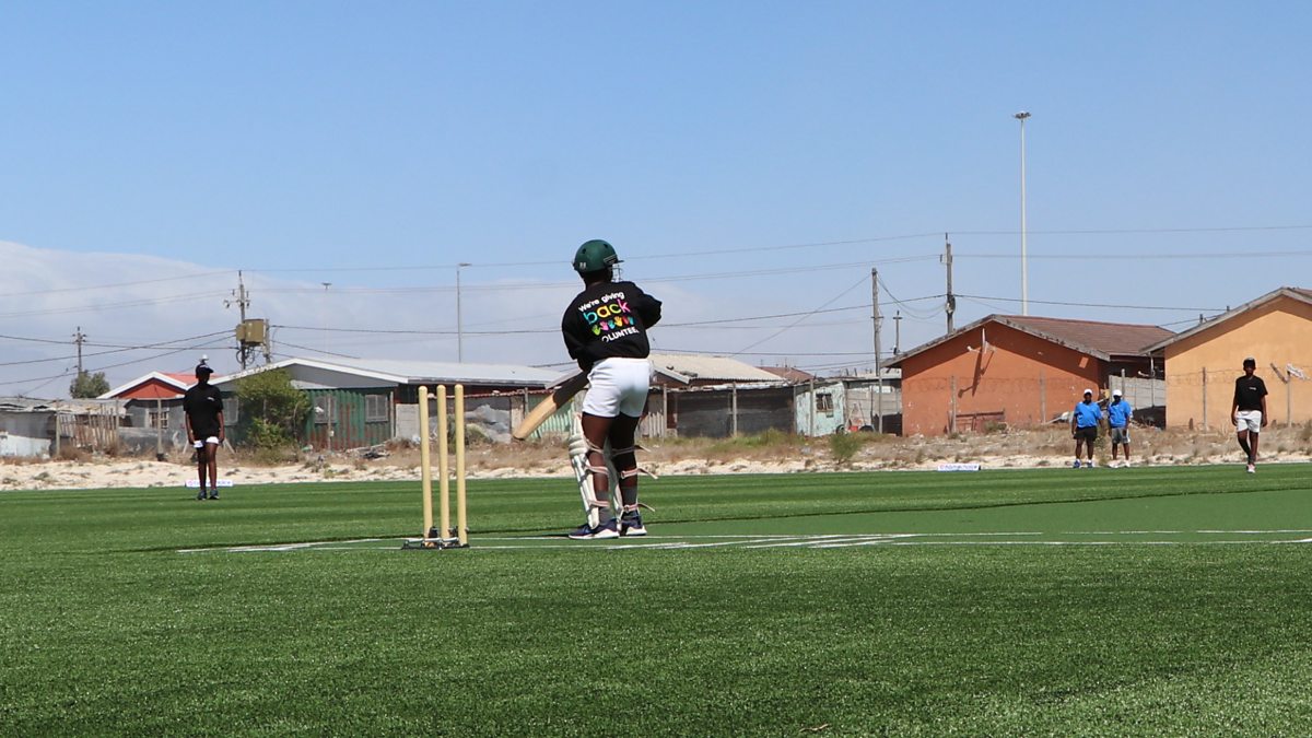 Credit: Cricket being played at the new cricket facility in Khayelitsha (Photo: Simon Parker/BBC)