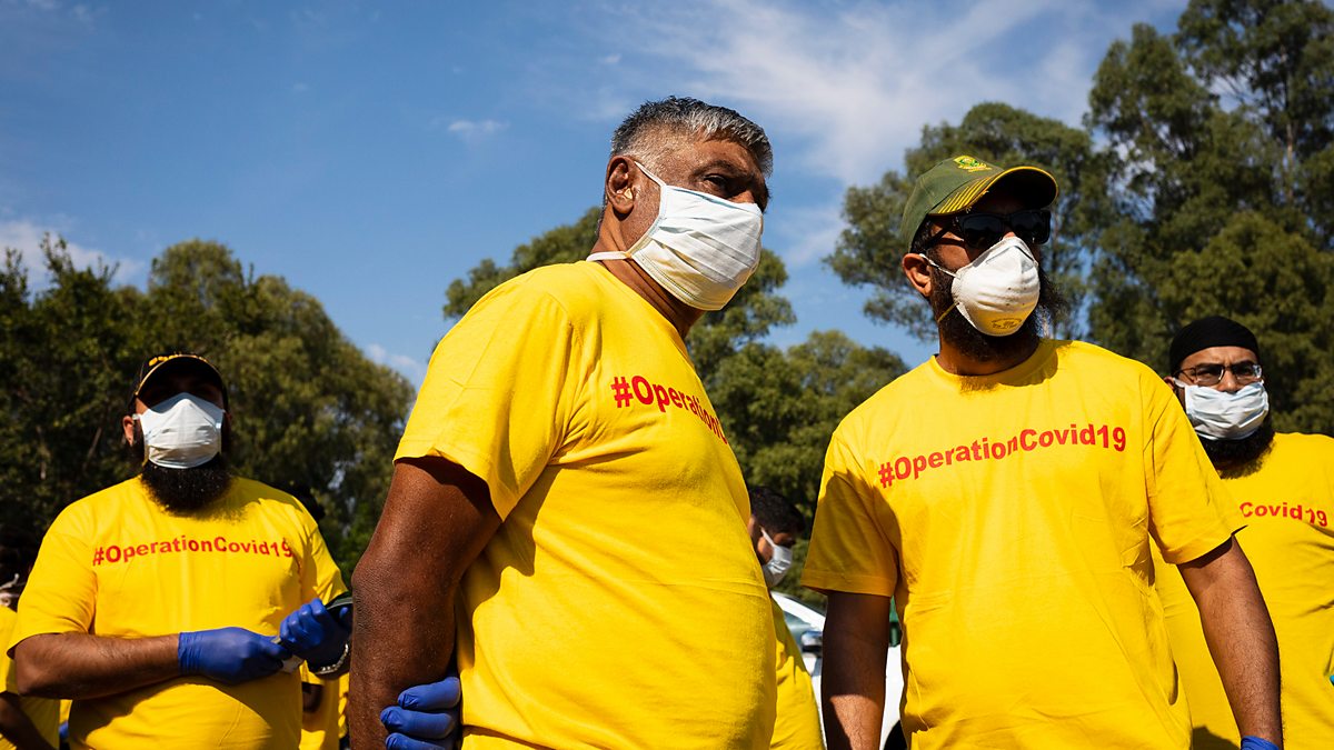 Photo: Volunteers from the COVID-19 Action Group prepare to hand out information leaflets and soap to residents in Johannesburg