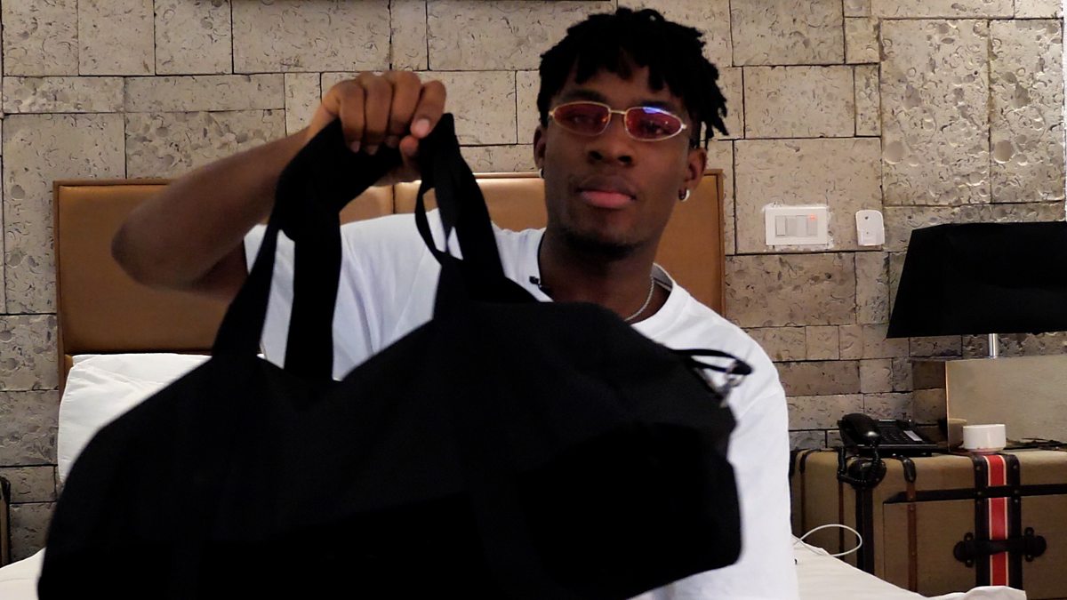 Video produced by Buki Bakare (Image: Joeboy with his bag. Credit: BBC)