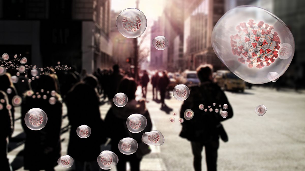 Photo: People walking in a US street with overlay an image of the coronavirus Credit: Getty Images