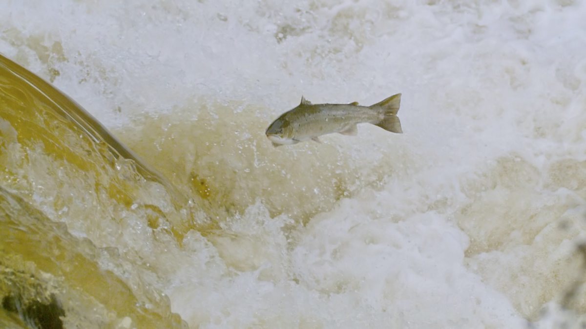 After years spent out in the Atlantic, salmon return to spawn in the same moorland rivers where they hatched. Waterfalls are no obstacles as the fish battle their way upstream.