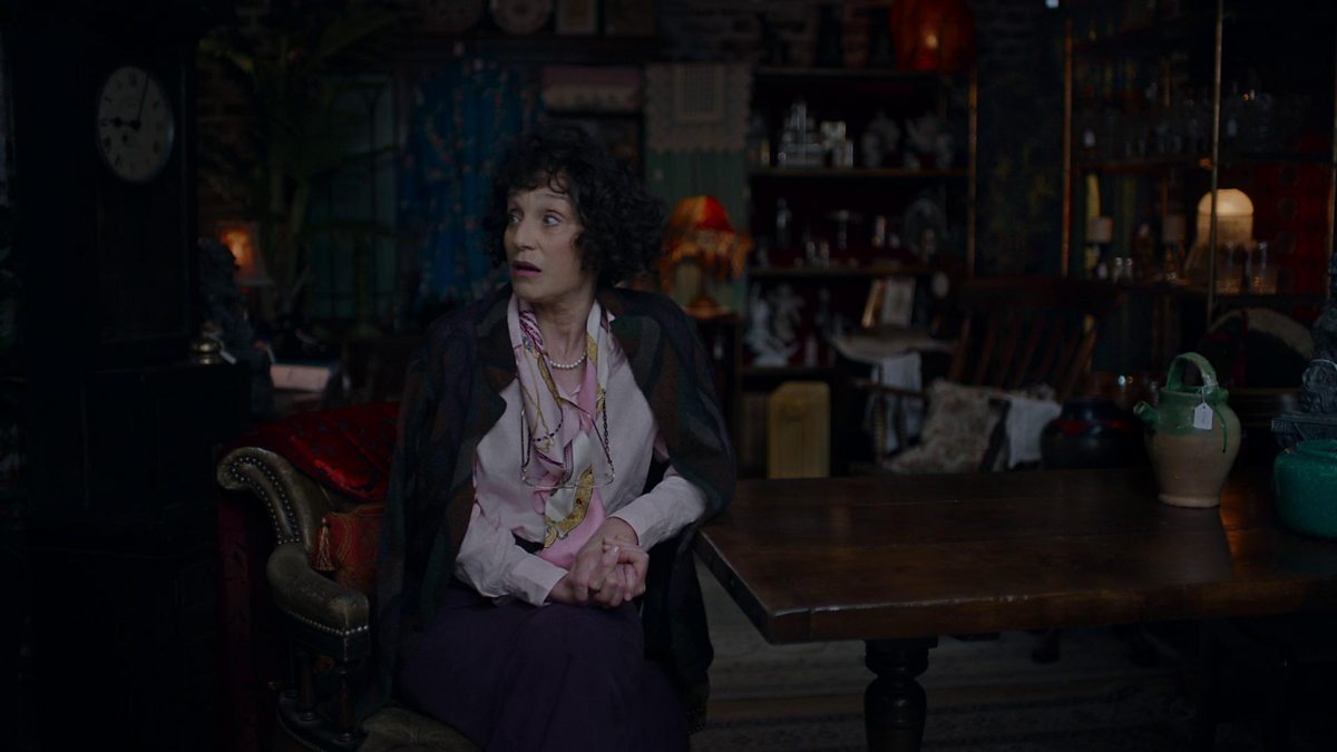 Kristin Scott Thomas is Celia, an antiques dealer with a good eye but rather eclectic stock.