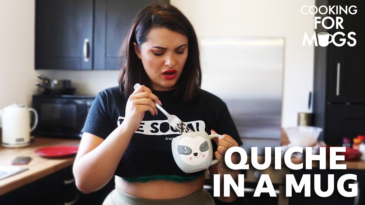 Welcome to the cooking show for total mugs, where Zarah shows how you can make yourself a wee quiche with just a mug and a microwave!
