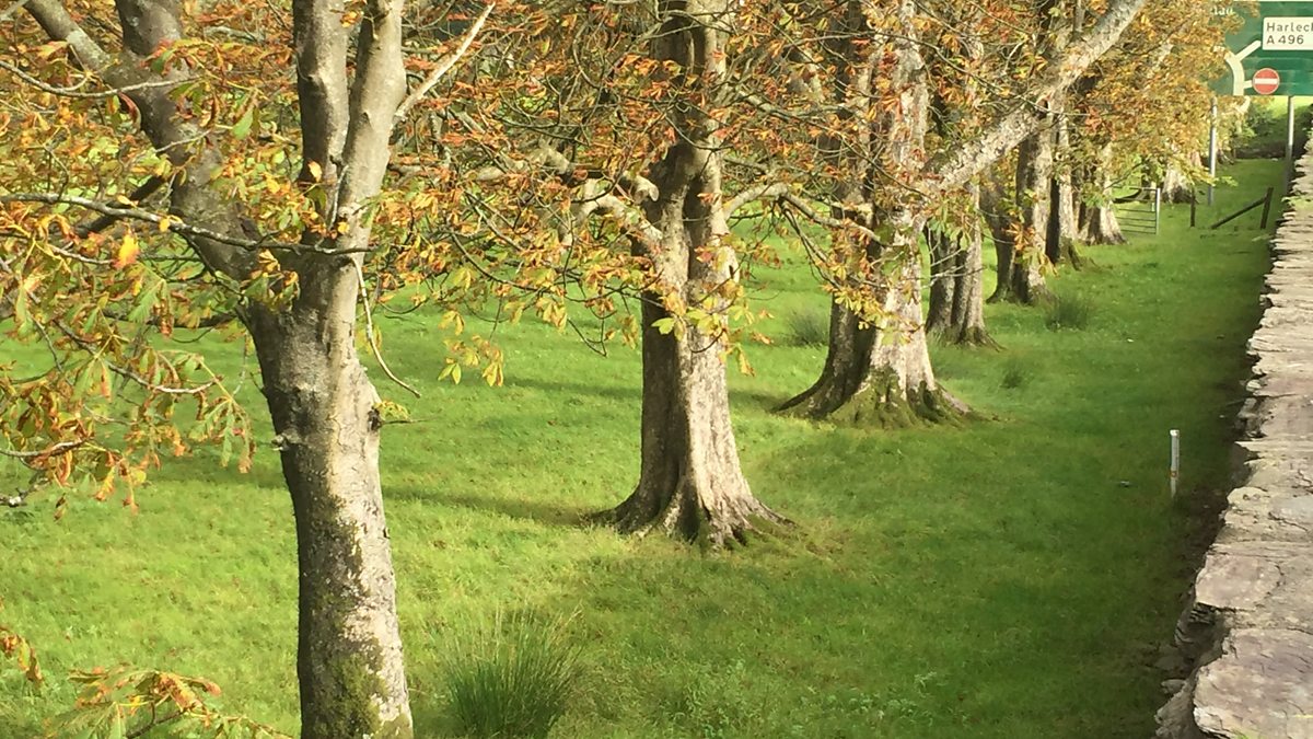 Mae dail coed ger Maentwrog yn liwiau'r Hydref yn barod, ond pam?