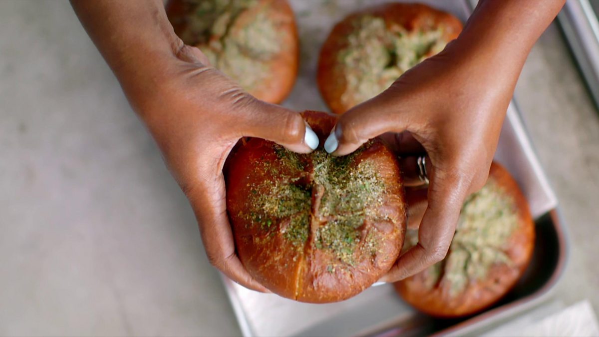 Nadiya throws the rule book out of the window with her savoury chicken doughnuts. Soft, crispy and sprinkled with herbs and spices, these will convince anyone to give them a try.