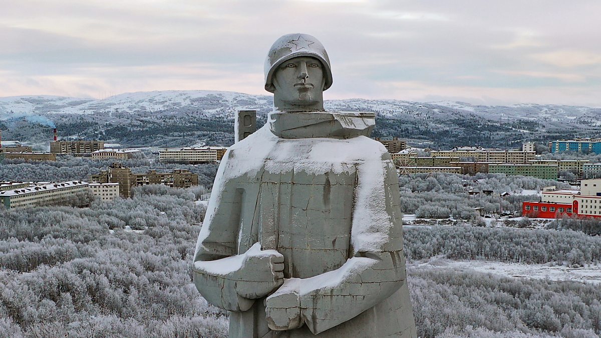 Photo: The Monument to the Defenders of the Soviet Arctic, Murmansk, on Russia's Arctic coast Credit: TASS via Getty Images