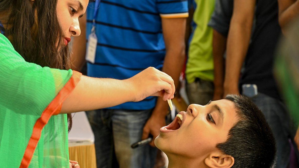Photo: A health worker gives a kid an oral vaccine in Dhaka, Bangladesh February 2020 Credit: Getty Images