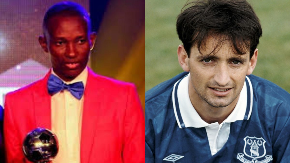 Photo: Namibia's Pat-Nevin Uanivi and World Football presenter Pat Nevin during his career at Everton (Getty Images)