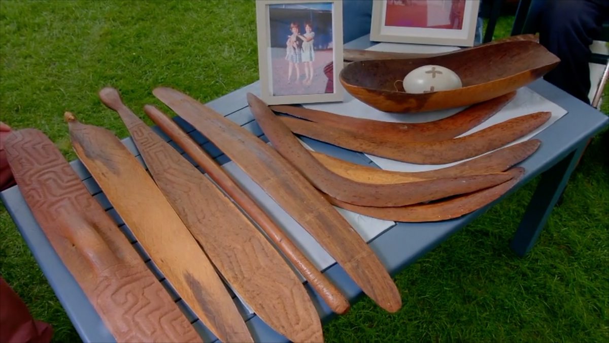 Paul Atterbury admires gifts from an aboriginal tribe in Australia.