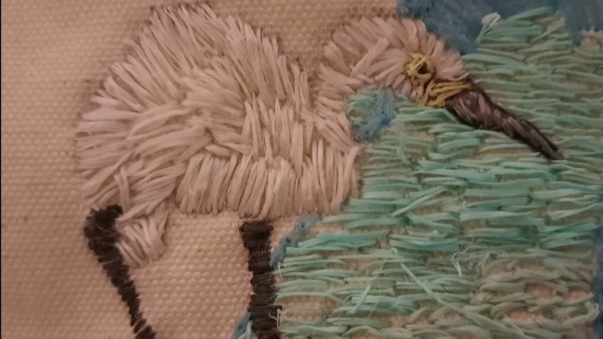 Llinos Griffin yn creu gwaith celf allan o blastig mae hi'n ei gasglu ar draethau.