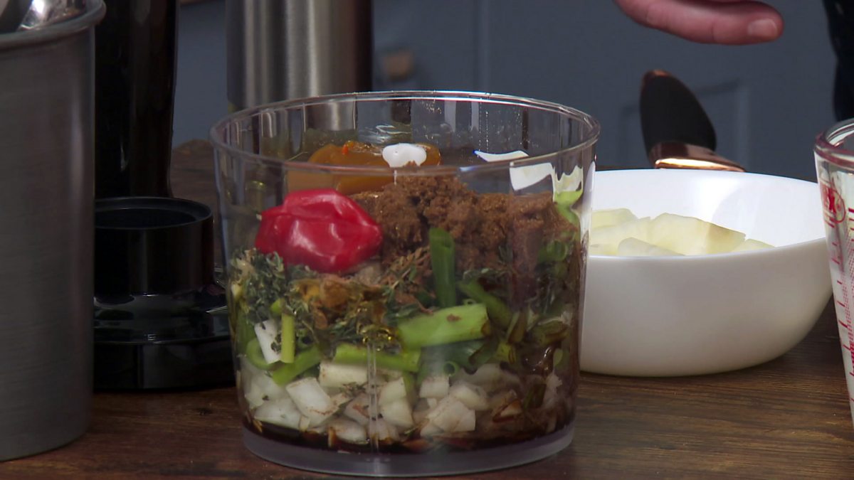 Tha Ruaraidh ag ullachadh cearc Charibbean
