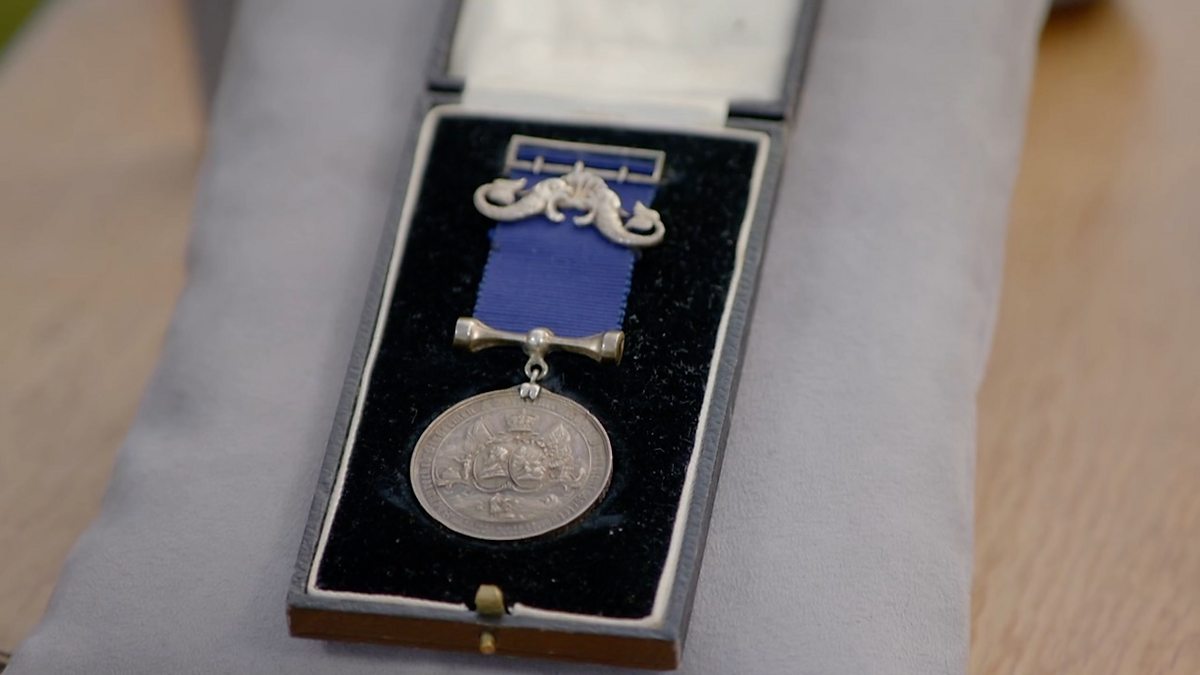 Paul appreciates medals won for bravery during the of rescue survivors from SS Delfina