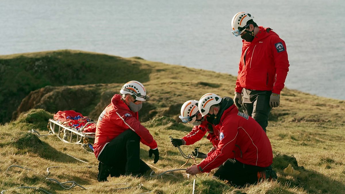 The Western Beacons Mountain Rescue team are on the Pembrokeshire coast and Derek is their willing casualty.