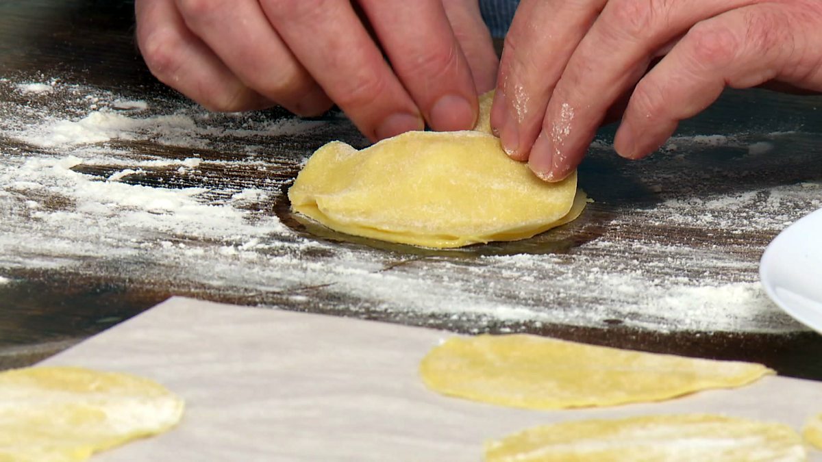 Tha Ravioli Ùisdein air a lìonadh le feòil crùbaig