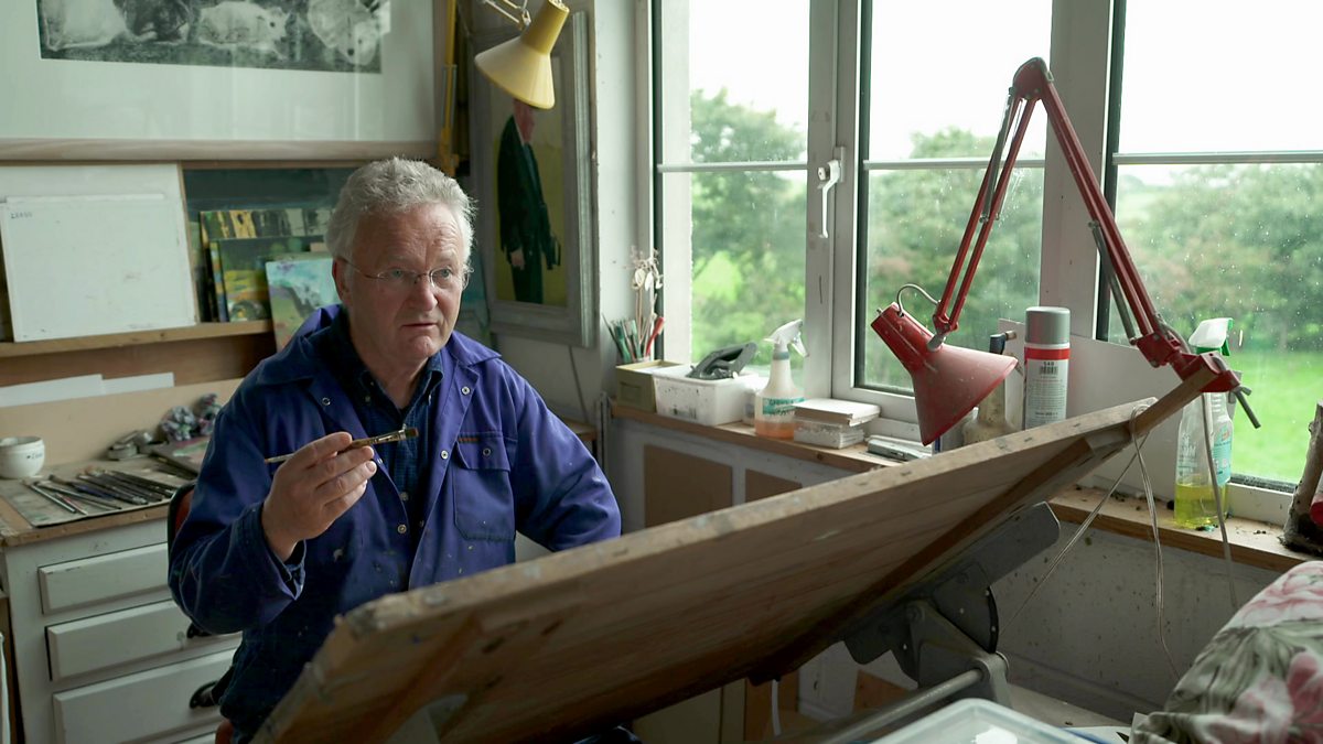Y tro hwn, bydd yr artist aml-gyfrwng Wil Rowlands yn mynd ati i geisio peintio portread o Dafydd Iwan. Artist Wil Rowlands takes on the challenge of painting a portrait of Dafydd Iwan.