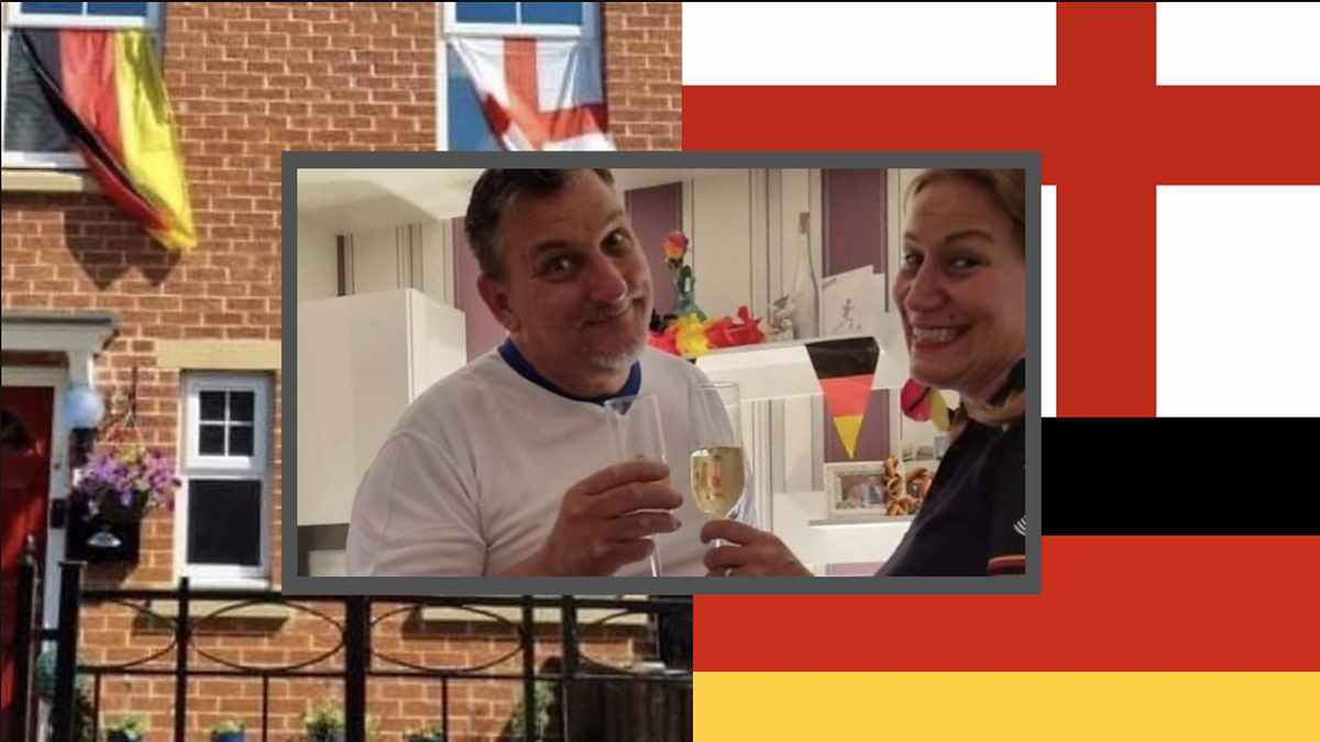 Brian is backing England, whilst his German wife Jen is rooting for her national team
