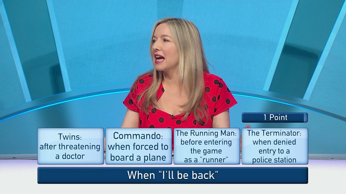 Arnie's famous catchphrase appears in several of his films including The Running Man, a film which features an extraordinary game show host!