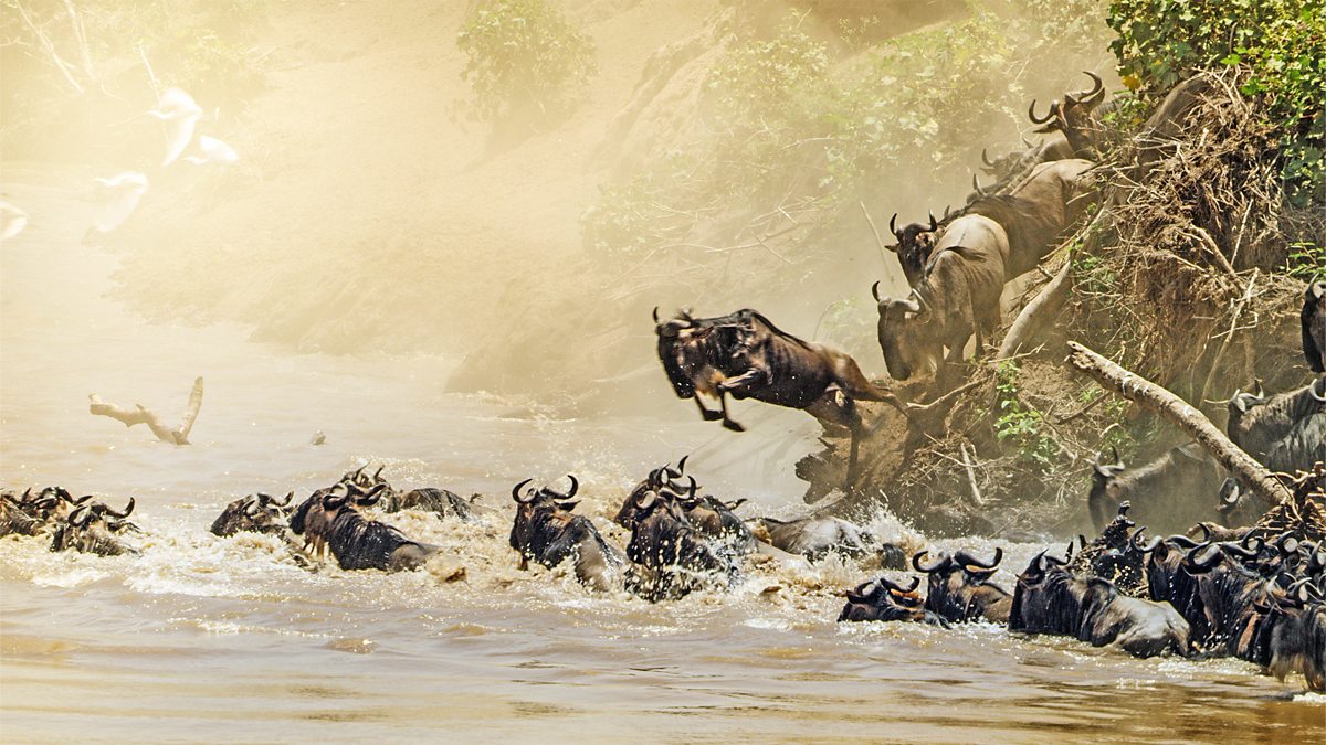 Gnu still has to cross the river, but a seemingly insurmountable series of challenges awaits. First, he faces a suicidal drop from sheer cliffs to the river below, and that’s before he tackles the treacherous currents and meets the waiting crocodiles. Even getting out is a near impossible task as the sheer number of wildebeest creates a deadly blockade. In the chaos, he becomes separated from his mother. Has she succumbed to the fate of so many others?