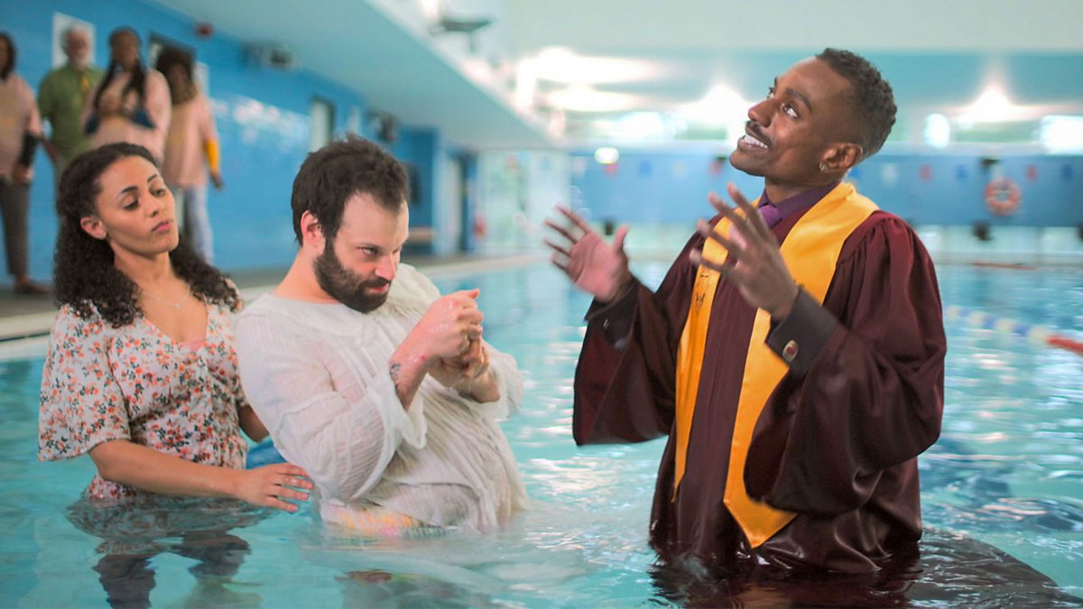 After being mistaken for an addict, Tim is welcomed in by an eccentric religious community who set their sights on his spiritual health. Despite staunch atheist Idris’s protestations, Tim’s life seems genuinely to improve after attending church, to the extent that he excitedly agrees to be baptised.