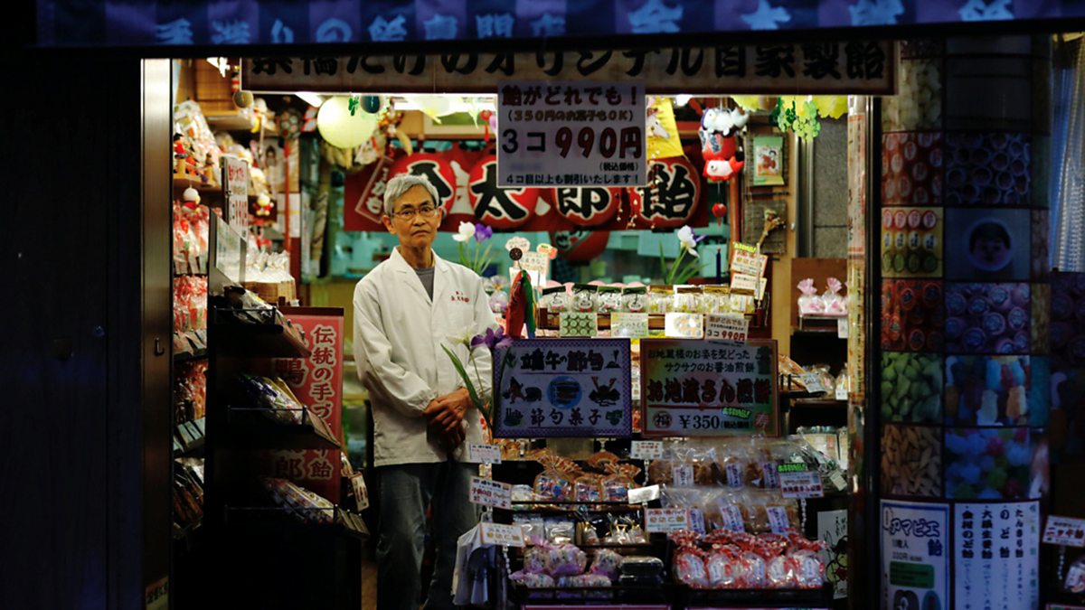 Photo: A shopkeeper in Tokyo Credit: Reuters