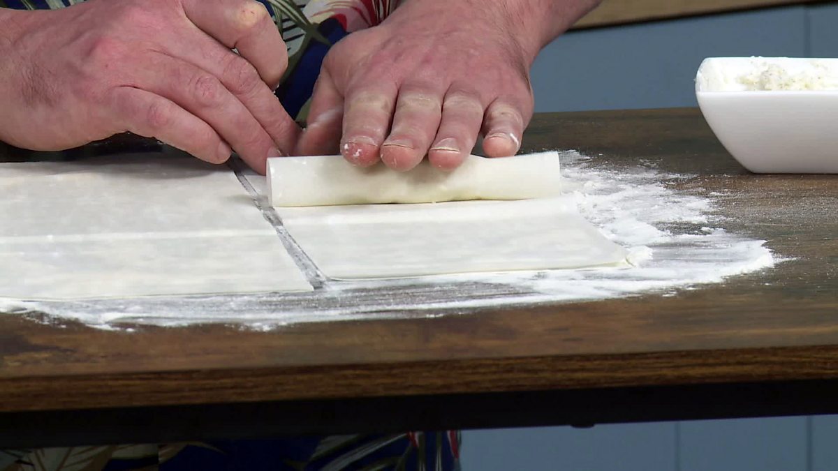 Uisdean makes a pastry dessert.