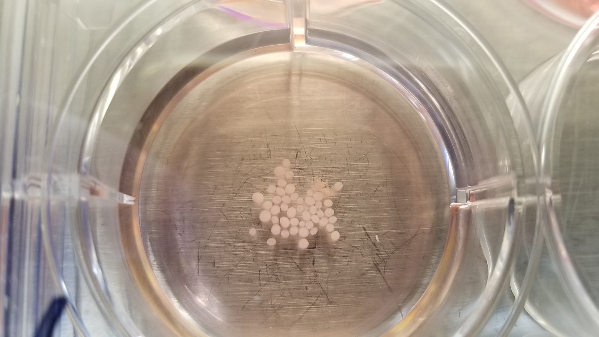 Stem cell researcher, Alysson Muotri, explains what human brain organoids are to CrowdScience's Marnie Chesterton. These little white balls of neural stem cells spontaneously grow into various types of brain cells and are about the size of a bee brain!