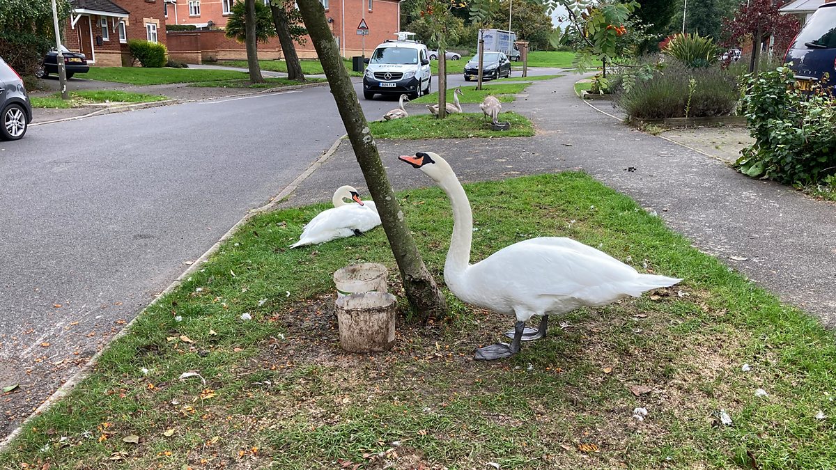 Family of swans 'squatting' in Beaumont Leys housing estate