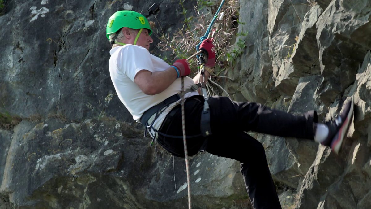 The only thing between Gareth Edwards and a very long drop is one piece of rope - he'd rather face the All-Blacks than do this.