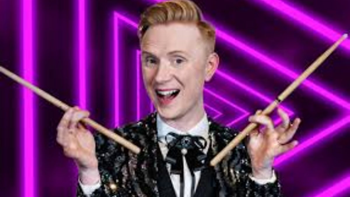 Y cyflwynydd tywydd a’r drymiwr Owain Wyn Evans yn sgwrsio gyda Betsan Powys