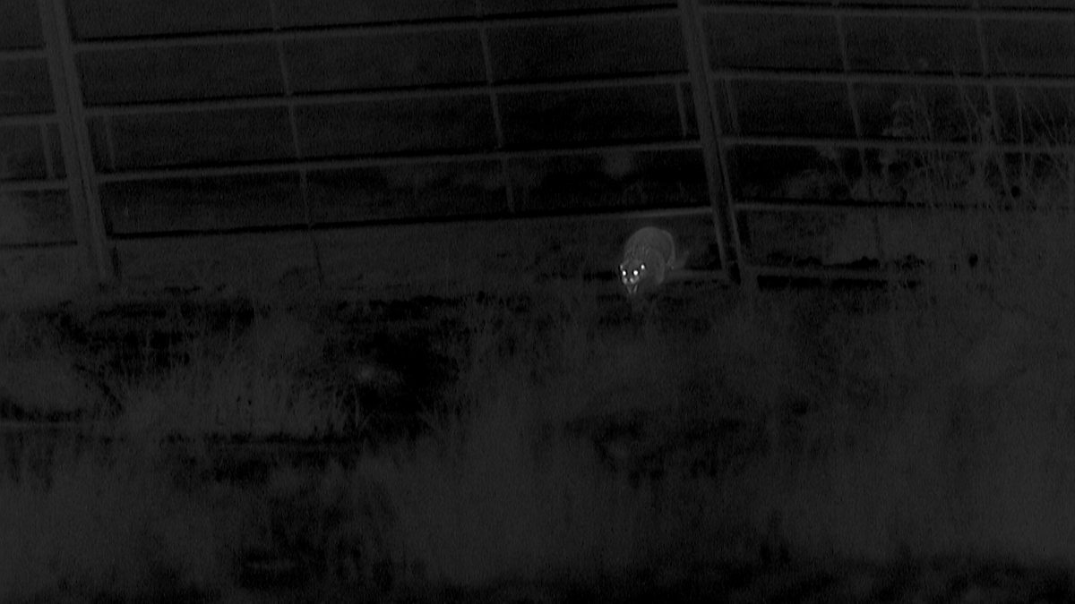 Thermal cameras reveal the moment when an otter chases off a fox.