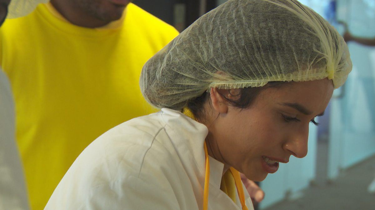 Karren is taken aback by Harpreet's regimented style in the kitchen whilst organising catering for a Silverstone tour.