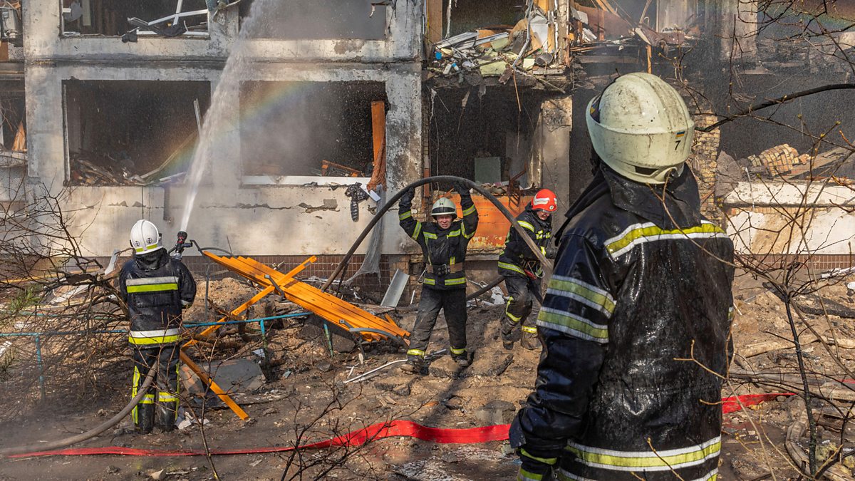 Russian air strikes hit residential buildings and a metro station in Ukraine's capital.