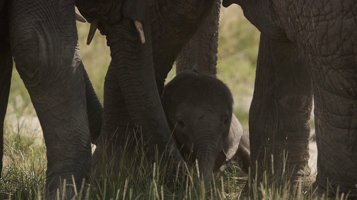 Elephant calf Atlas, takes his first few steps in a world of giants.