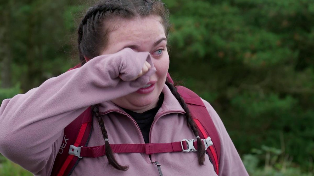 The Pilgrims discuss the meaning behind a symbolic stone found along the pilgrimage route, with Scarlett feeling particularly emotional when the other Pilgrims start making jokes.