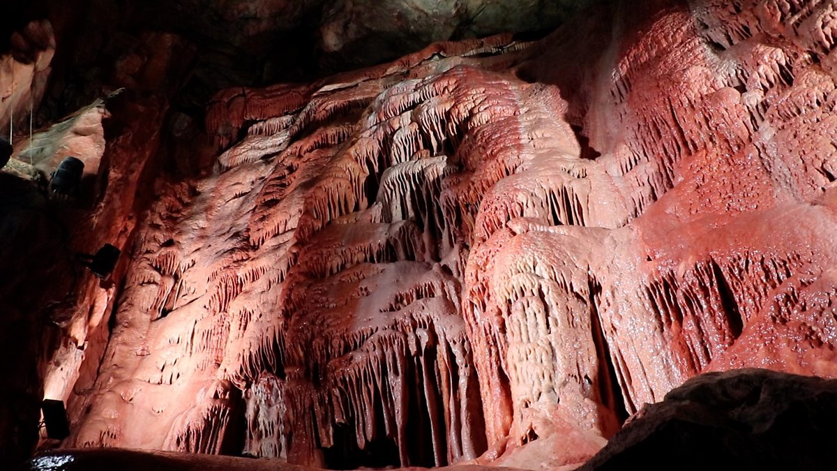 The general manager of Cheddar Gorge and Caves Fenia Vitali and tour guide Sarah Bishop show Will Richards some of the sights inside the show cave.