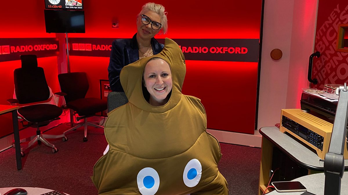 Lavinia Drake stopped off on her epic 187.35 mile walk of the River Thames... dressed as a poo emoji!