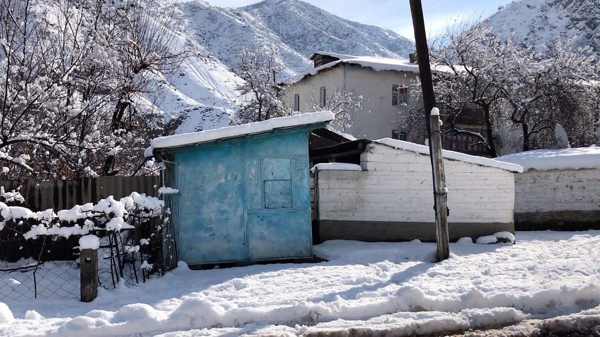 (Image: Outside a house in Romit, Tajikistan. Credit: BBC)