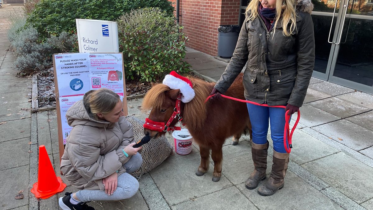 BBC Radio Merseyside's Katie Haseldine went to Southport College where a Shetland Pony paid a visit. Squirrel is training to be a therapy pony but he was also raising money for local causes...