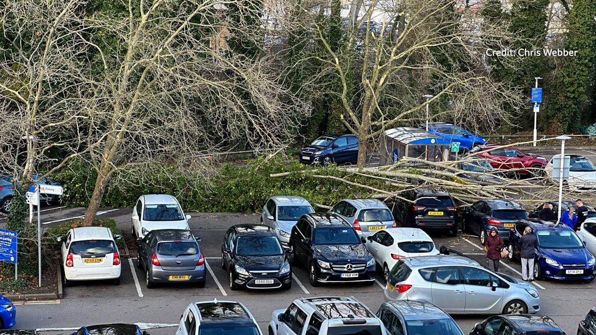 Seven cars were damaged when the tree fell in the Tesco car park on Springfield Road, Chelmsford, on Friday afternoon.