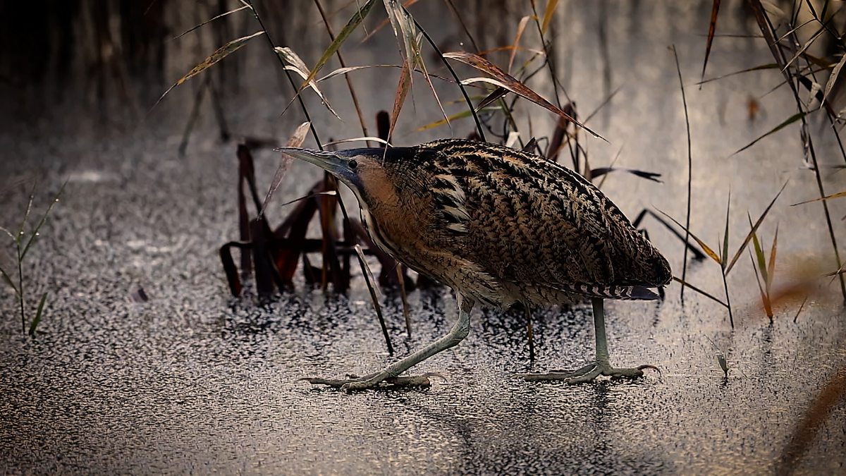 A beautiful bittern stalks across the ice, captured as part of a mindfulness moment
