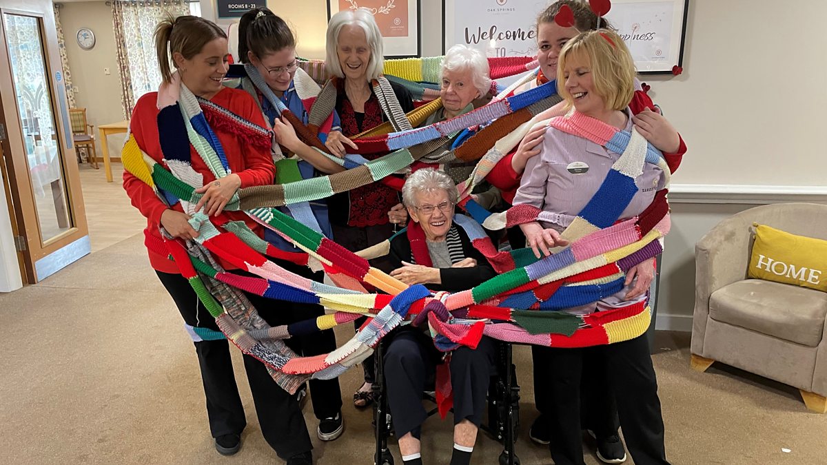 Care home residents knit a 340ft long scarf