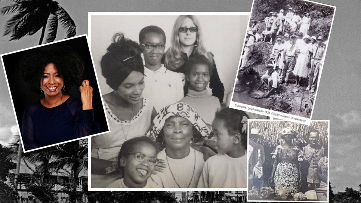 (Photo: (Front) Collage of Hennah Draaibaar's family (Background) The city of Albina in 1970s. Credit: (Front) Courtesy of Hennah Draaibaar (Background) Seidel/United Archives/Universal Images Group via Getty Images)