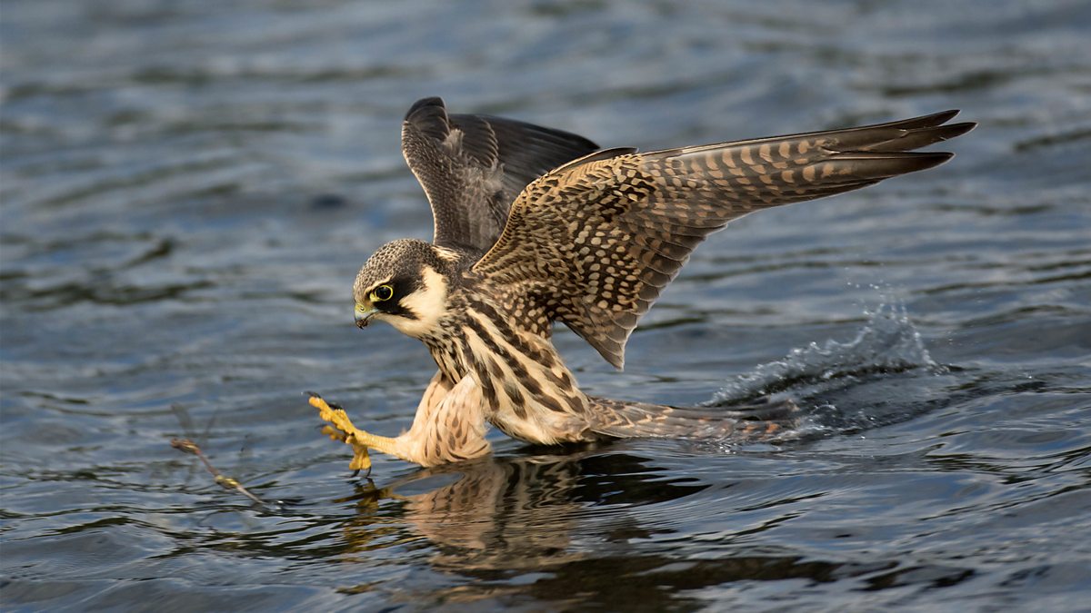 Where our freshwater reaches the sea, vast mudflats can form, full of rich earth carried down by the river. These habitats are a magnet to hundreds of thousands of overwintering wading birds, migrants that come to fuel up on the hidden food below the mud. But they attract their own predators too. Peregrine falcons visit our coasts every year, and these migrants are on their menu.